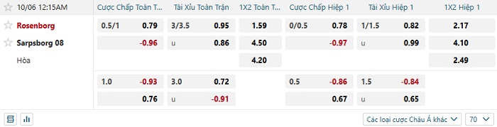 Tip kèo Châu Á hiệp 1 Rosenborg vs Sarpsborg
