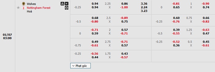 Tip kèo Châu Á full trận Wolves vs Nottingham