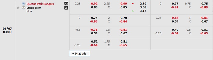 Tip kèo Châu Á hiệp 1 QPR vs Luton