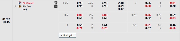 Tip kèo Châu Á full trận Gil Vicente vs Rio Ave