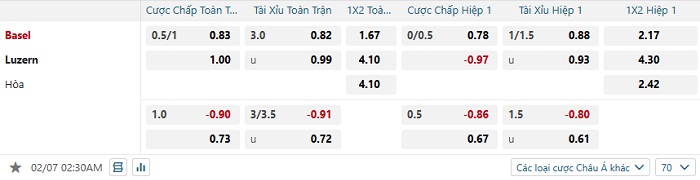 Tip kèo Châu Á hiệp 1 Basel vs Luzern