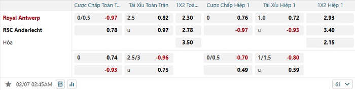 Tip kèo Châu Á full trận Royal Antwerp vs Anderlecht