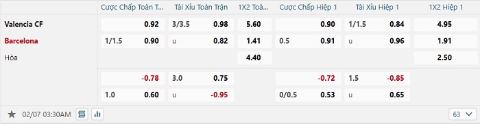Tip kèo Châu Á hiệp 1 Valencia vs Barcelona