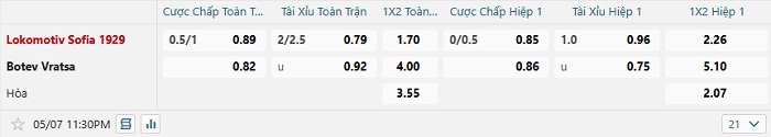 - Dự đoán tỷ số hiệp 1: Lokomotiv Sofia 1 – 0 Botev Vratsa
