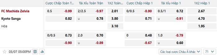 Tip kèo Châu Á full trận Machida Zelvia vs Kyoto Sanga