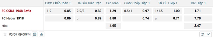 Tip kèo Châu Á hiệp 1 CSKA Sofia vs Hebar