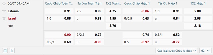 Tip kèo Châu Á hiệp 1 Estonia vs Israel