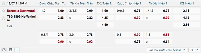Tip kèo Châu Á hiệp 1 Dortmund vs Hoffenheim