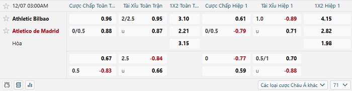 Tip kèo Châu Á full trận Bilbao vs Atletico Madrid