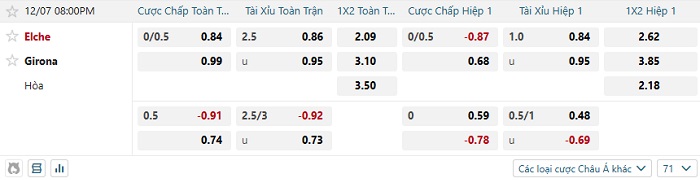 Tip kèo Châu Á full trận Elche vs Girona