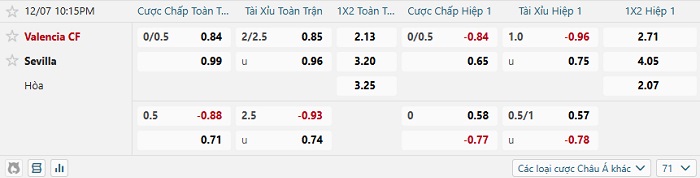 Tip kèo Châu Á hiệp 1 Valencia vs Sevilla