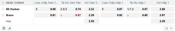 Tip kèo tỷ số Hacken vs Brann