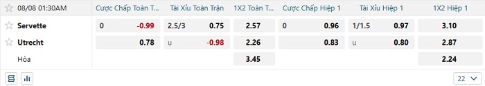 - Dự đoán tỷ số hiệp 1: Servette 0 – 0 Utrecht