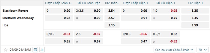 Tip kèo Châu Á hiệp 1 Blackburn vs Sheffield Wed