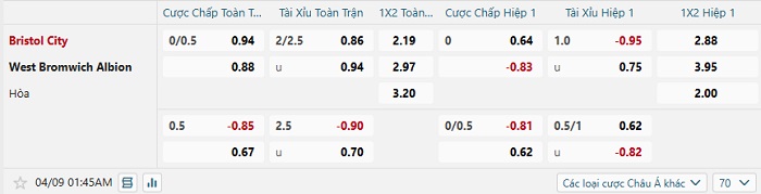 Tip kèo Châu Á full trận Bristol City vs West Brom