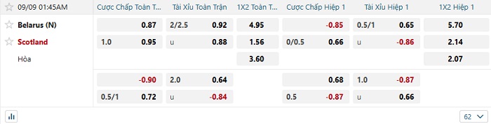 Tip kèo Châu Á full trận Belarus vs Scotland