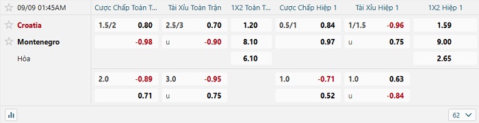 Tip kèo Châu Á full trận Croatia vs Montenegro