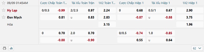 • Tip kèo cá cược Châu Á hiệp 1: Chọn Đan Mạch +1/4