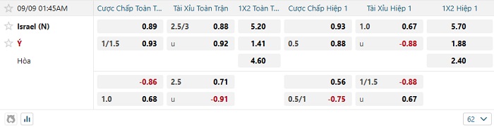 Tip kèo Châu Á full trận Israel vs Ý
