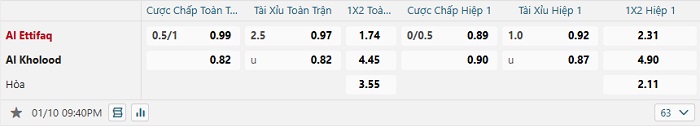 Tip kèo Châu Á hiệp 1 Al Ettifaq vs Al Kholood