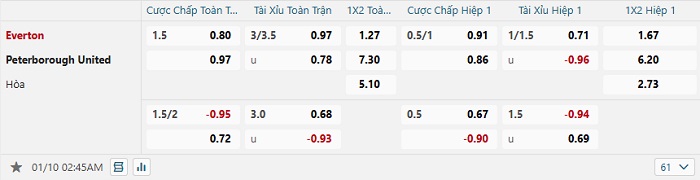 - Dự đoán tỷ số hiệp 1: Everton 1 – 0 Peterborough