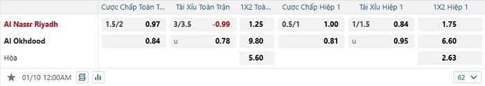 Tip kèo Châu Á hiệp 1 Al Naasr vs Al Okhdood