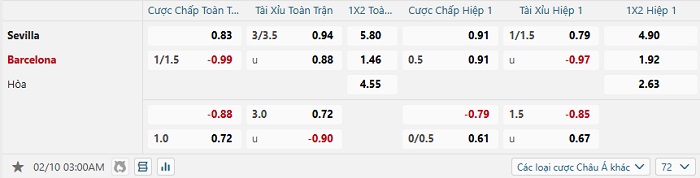 Tip kèo Châu Á hiệp 1 Sevilla vs Barcelona