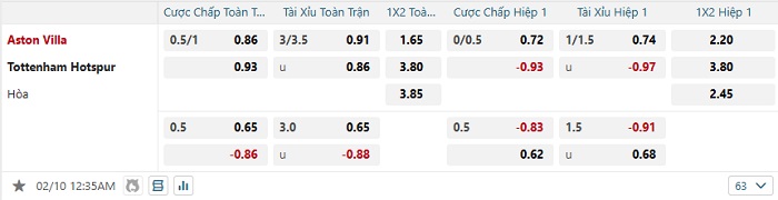 Tip kèo Châu Á full trận Aston Villa vs Tottenham
