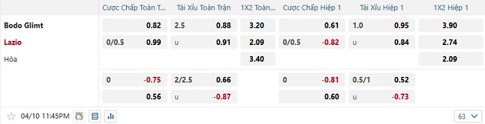 - Dự đoán tỷ số hiệp 1: Bodo Glimt 0 – 0 Lazio