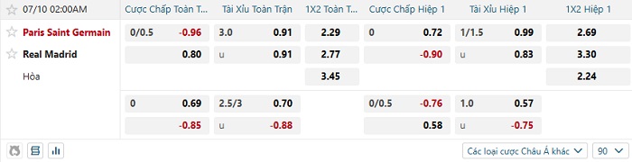 Tip kèo Châu Á full trận PSG vs Real Madrid