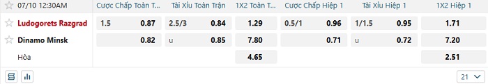 • Dự đoán tỷ số hiệp 1: Ludogorets 1 – 0 Dinamo Minsk