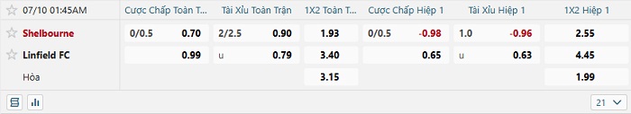 Tip kèo Châu Á full trận Shelbourne vs Linfield