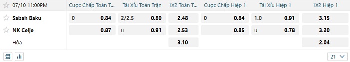 Tip kèo Châu Á hiệp 1 Sabah Baku vs NK Celje