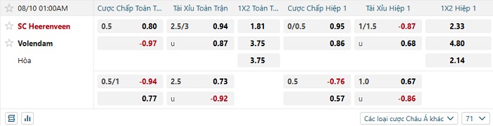 Tip kèo Châu Á hiệp 1 Heerenveen vs Volendam