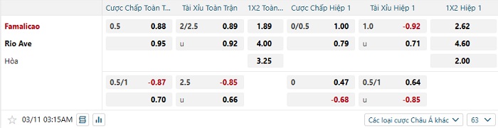 Tip kèo Châu Á full trận Famalicao vs Rio Ave