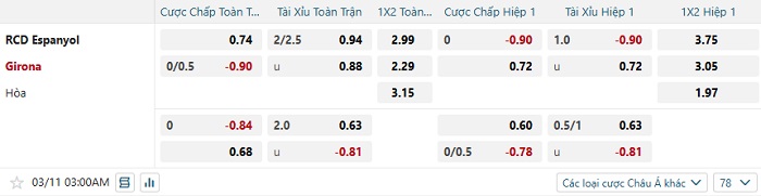 Tip kèo Châu Á full trận Espanyol vs Girona