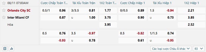 Tip kèo Châu Á full trận Orlando City vs Inter Miami