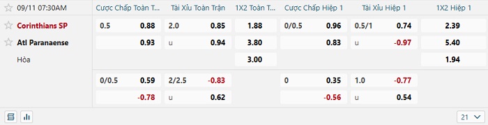 Tip kèo Châu Á full trận Corinthians vs Paranaense