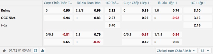 Tip kèo Châu Á hiệp 1 Reims vs Nice