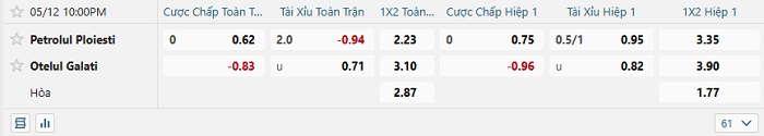 Tip kèo Châu Á hiệp 1 Petrolul vs Otelul
