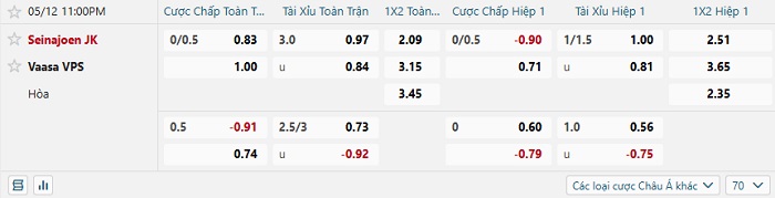 - Tip kèo cá cược Châu Á hiệp 1: Chọn Vaasa +1/4
