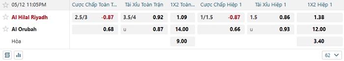 Tip kèo Châu Á hiệp 1 Al Hilal vs Al Orubah