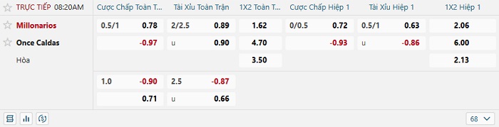 Tip kèo Châu Á hiệp 1 Millonarios vs Once Caldas