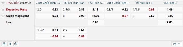 Tip kèo Châu Á full trận Deportivo Pasto vs Unlon Magdalena
