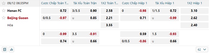 - Dự đoán tỷ số hiệp 1: Henan FC 0 – 0 Beijing Guoan
