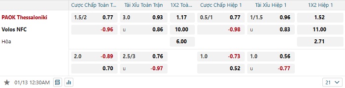 Tip kèo Châu Á hiệp 1 PAOK vs Volos