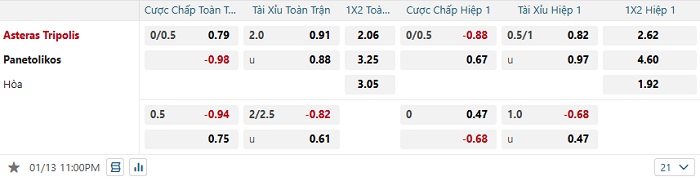 Tip kèo Châu Á hiệp 1 Asteras vs Panetolikos