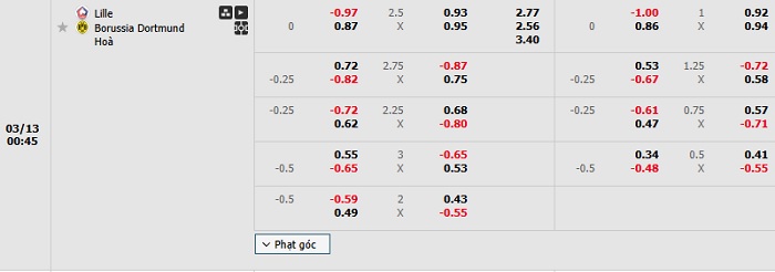 Tip kèo Châu Á full trận Lille vs Dortmund