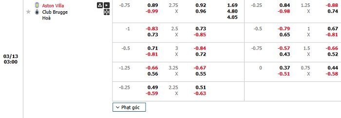 Tip kèo Châu Á hiệp 1 Aston Villa vs Club Brugge