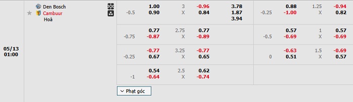 Tip kèo Châu Á full trận Den Bosch vs Cambuur